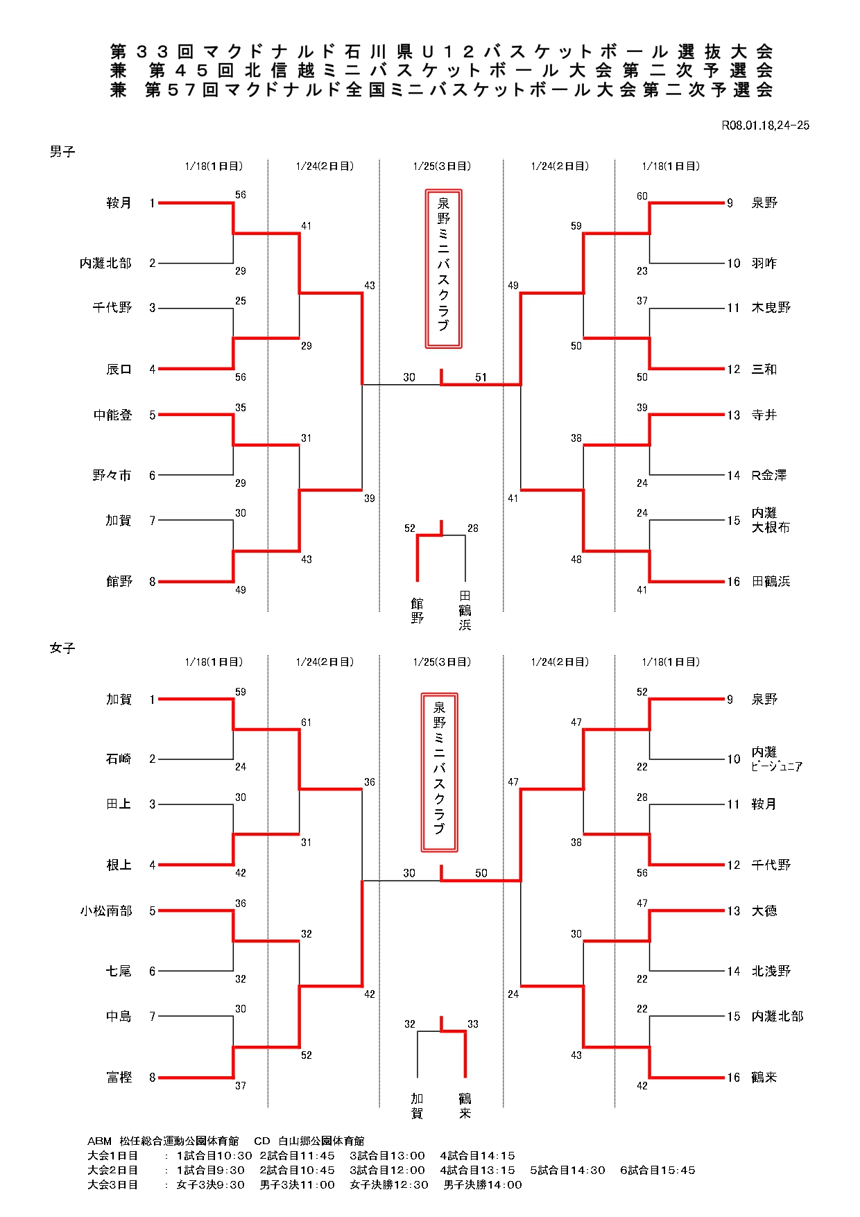 | 会場 | 松任総合運動公園体育館 白山郷公園体育館 |